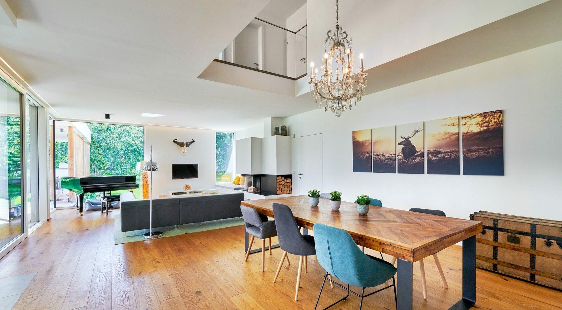 Professionell geplante Glas- und Fensterlösungen verschmelzen nicht nur kunstvoll den Innen- und Außenbereich, sondern sichern ein besonders großzügiges, weites Raumerleben. Und bringen viel natürliches Stimmungslicht zu jeder Tageszeit ins Heim – eine wichtige weitere Voraussetzung für Gesundheit und Wohlbefinden.