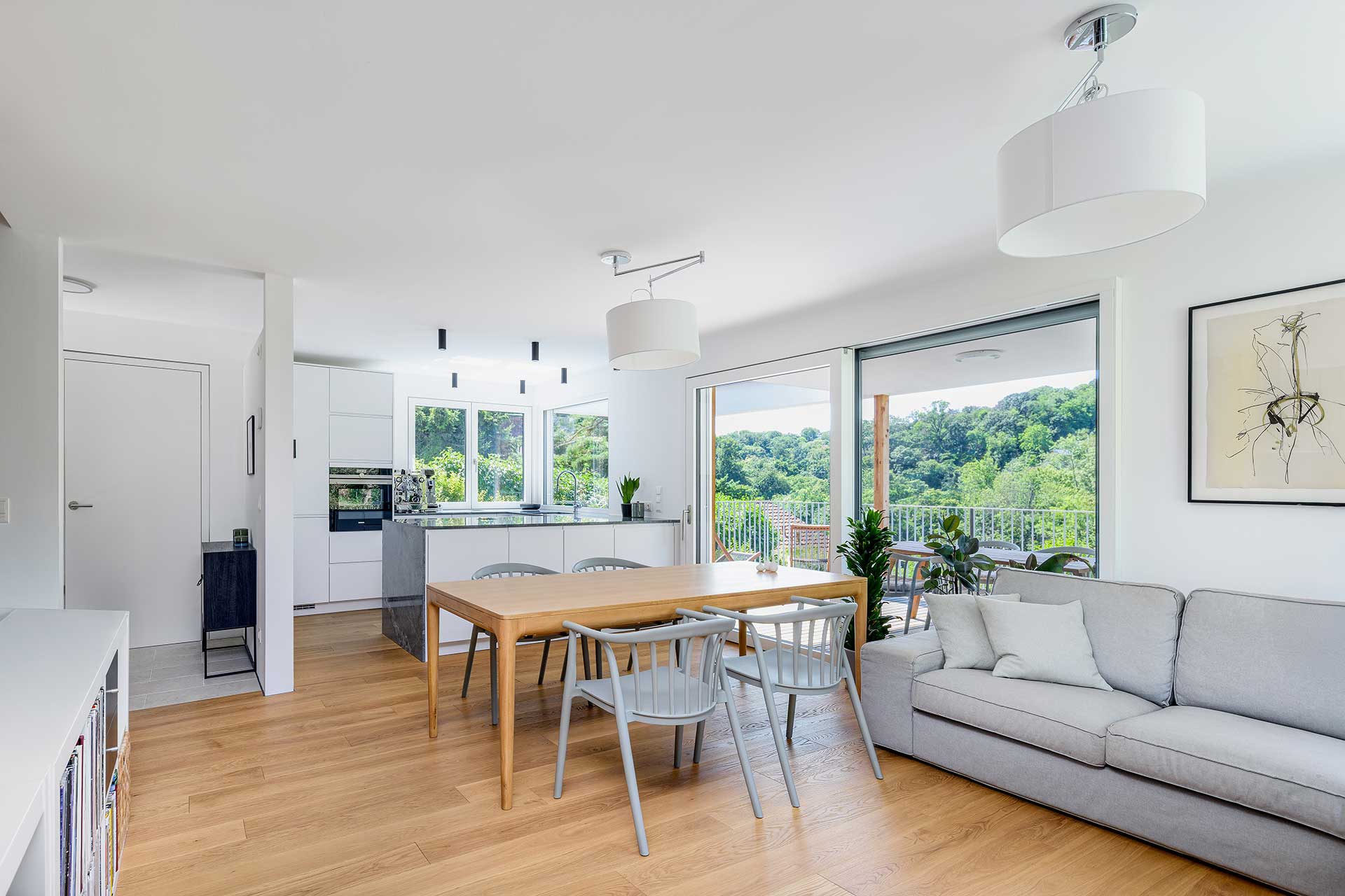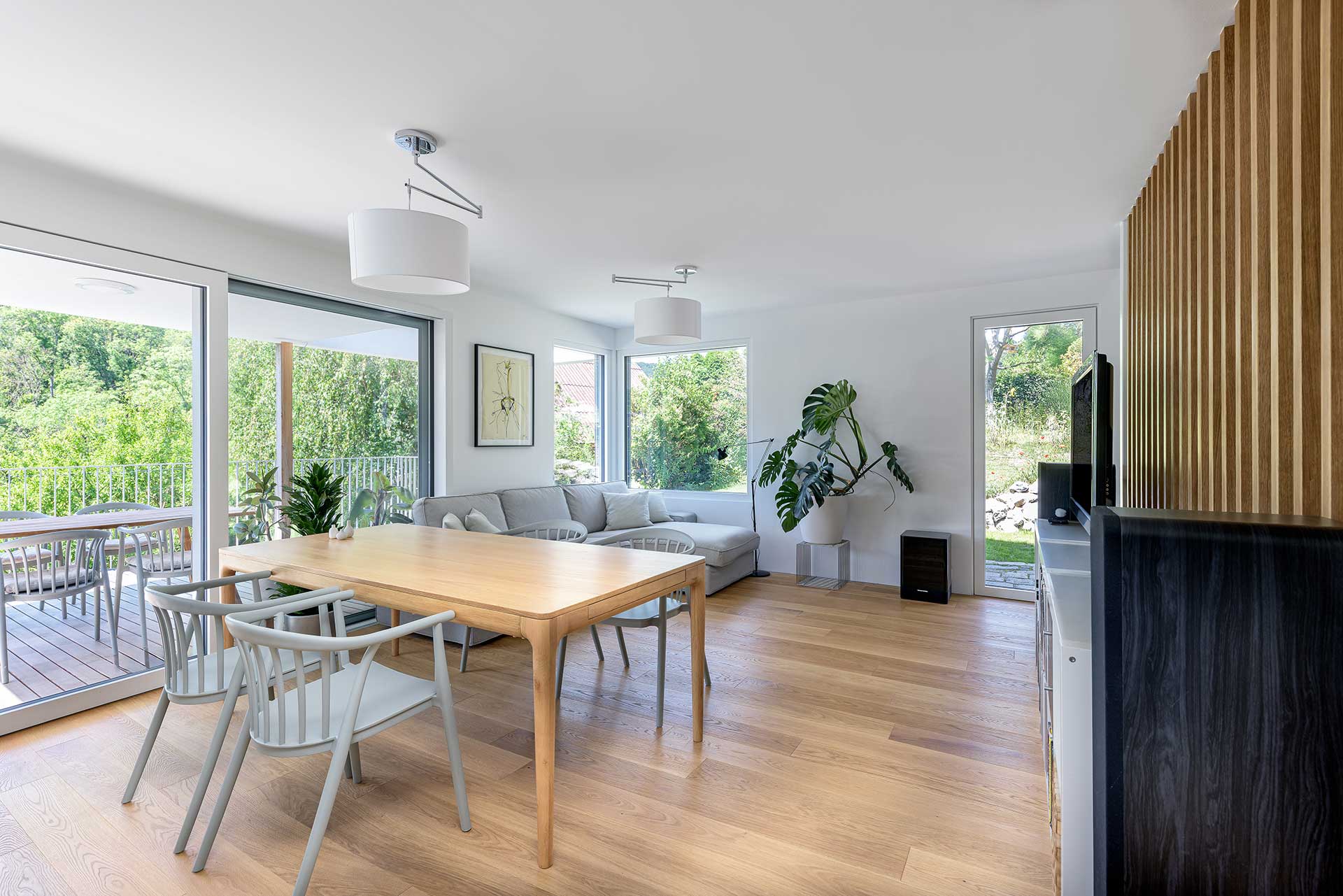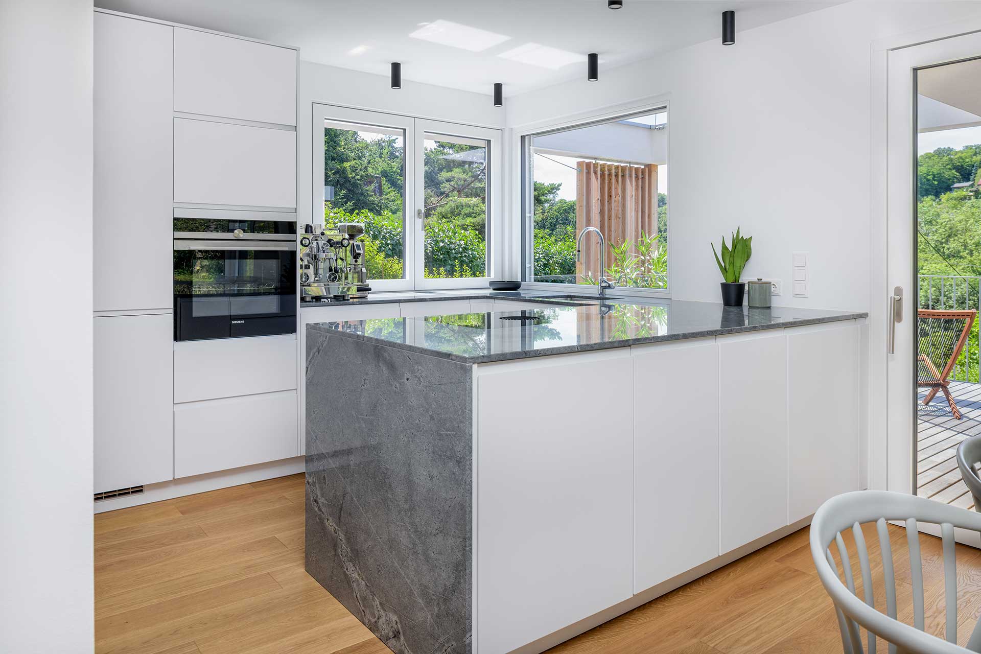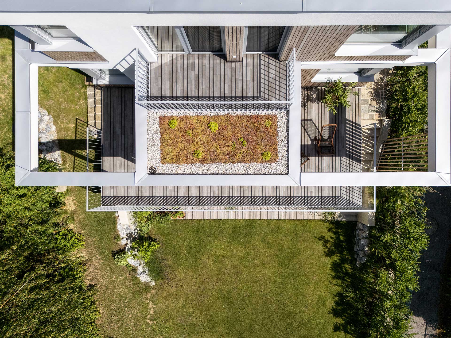 Dieses Kleingartenhaus begeistert mit einer Kombination aus Holzschalung und weißer Putzfassade. Der terrassenförmige Baukörper bietet großzügige, überdachte Bereiche und natürliche Holzbeläge auf Terrasse und Balkon – perfekt, um den Blick in den Wienerwald zu genießen. Eine PV-Anlage und ein Gründach runden das nachhaltige Konzept ab.